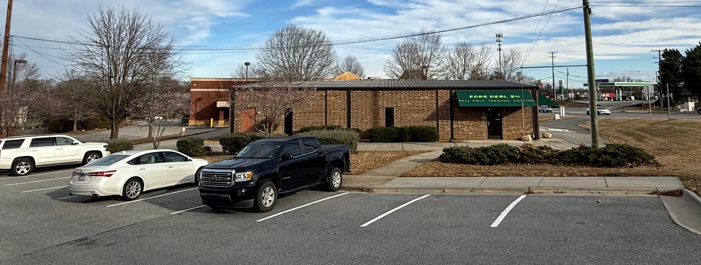 A-Park in our side lot via the access road off Horse Pen Creek (pictured above). Handicap parking available in our front lot.